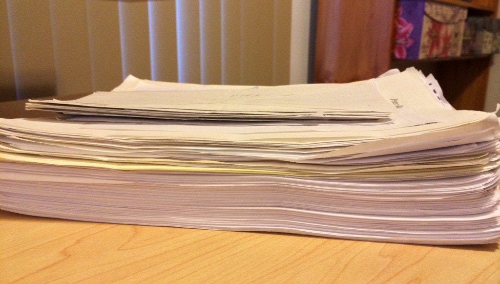 Yes, it looks like a ream of paper, but I swear to commas: those are my rejections. From agents.