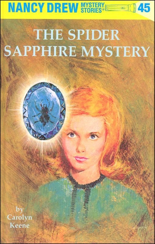And this book goes straight to my heart. I adored Nancy Drew growing up—I mean, I literally read all 56 original books (yes, I still remember how many there were) over the course of my 3rd grade summer break. Just a glance at one of these covers, and I feel 100% invincible ('cos admit it: Nancy was The Master) and 100% adventurous (I mean, Nancy and crew got to go everywhere). Plus, a single glance at the cover, and I can tell you vaguely what it's about. For example, The Spider Sapphire Mystery took Nancy to Africa, and I distinctly recall she and swoon-worthy Ned getting a furious rash after touching a poison suitcase. Oh, the intrigue!