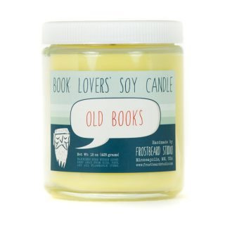 Kelly recommended Frostbeard Studio, purveyors of literary scented candles. My favorite is Old Books, but there’s also New Paperback, Reading at the Café, and many more.