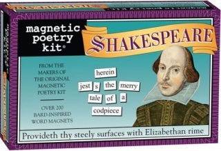 Kelly also suggested the classic magnetic poetry set. Always a great gift for anyone with a love of words, you can get the Shakespeare version pictured below at barnesandnoble.com.