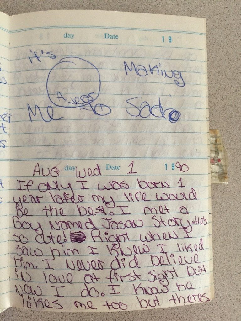 So sophisticated and chic. The teddy bears with the red hearts just scream maturity. And while I thought the lock was sure to protect all my secrets, it was no match for the pair of scissors my sister used and then so sneakily stapled and taped back together thinking I’d never suspect a thing. No, seriously. She didn’t think I’d notice. She put it right back in the hiding spot I used and acted all innocent when I found it. Newsflash…I noticed!