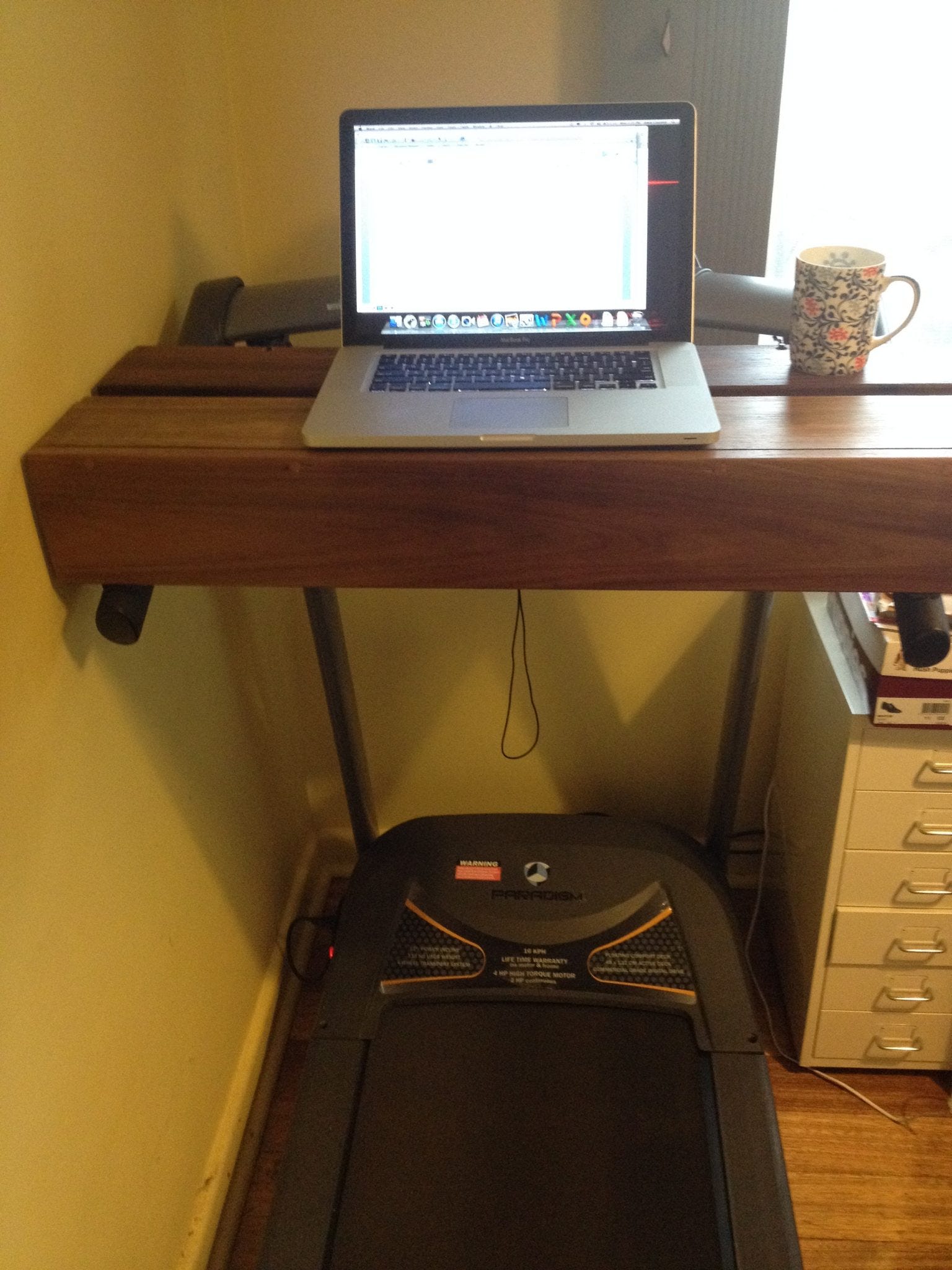 The answer? A treaddesk! Behold! (You can click for a much larger image.)