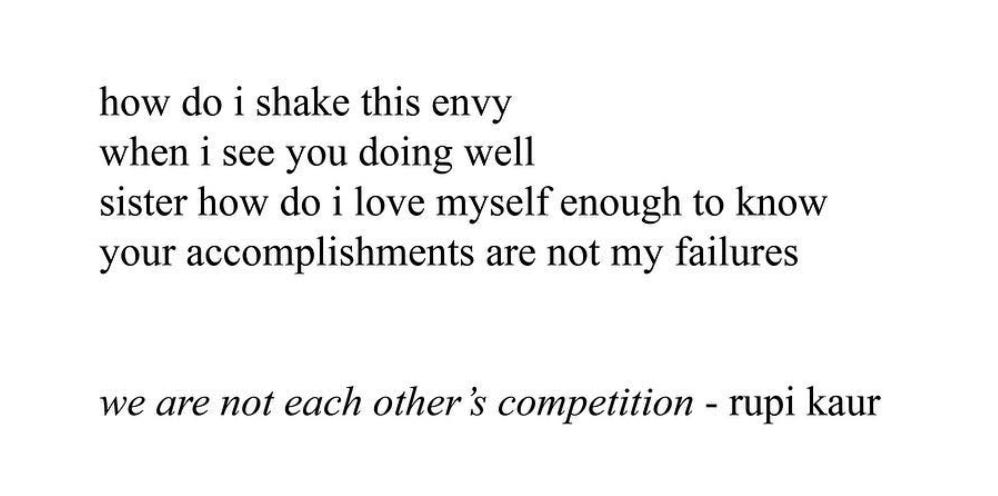 I was browsing Instagram, as one does, and came upon the above Rupi Kaur poem. It made me weirdly emotional. And, as someone with anxiety, I like to say I’m extra tuned into my emotions—I try to capture them when I feel them and “sort them.” It’s a way for me to process feelings that are important, make sure I’m okay, and then let them go. I’ve been wanting to write this post for weeks, but every time the day approached for me to work on it came, I couldn’t. Not because I was too busy, but because talking about envy is a vulnerable act that confronts dark feelings I am often ashamed to feel.