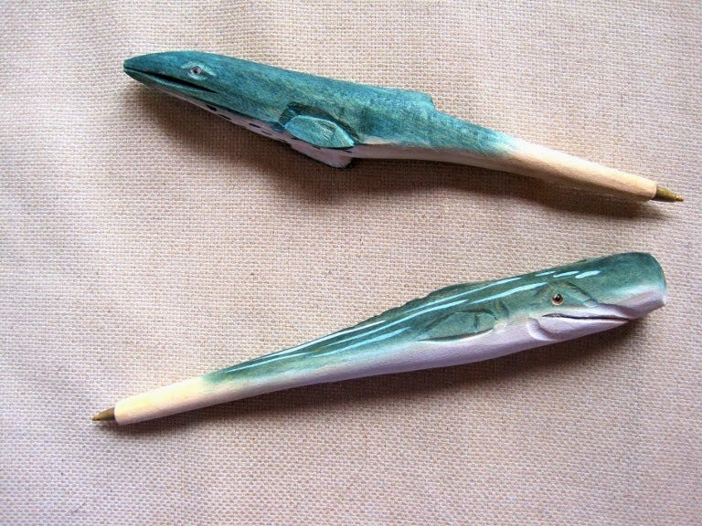 I (Erin) couldn't agree more! A huge thanks to Kendall for giving us a peek at her cover's design process, and for sharing some of the images that inspired the artwork. I'm so glad it was a collaborative effort between author and publisher, because I absolutely adore the final result. Keeping in the whaling, ocean-centric theme, Kendall is offering up some Salt & Storm swag. Two winners will receive a handcrafted, wooden whale pen (shown at right).