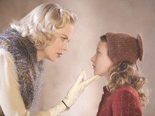A little sadistic, a lot fascistic, Kesey's Ratched is more symbolic than Annie Wilkes—a 60s stereotype of the Powers That Be. Her power is bureaucratic, but Kesey also draws a direct line (through Billy Bibbit) between Ratched and the corruption of the maternal. Which brings me to...